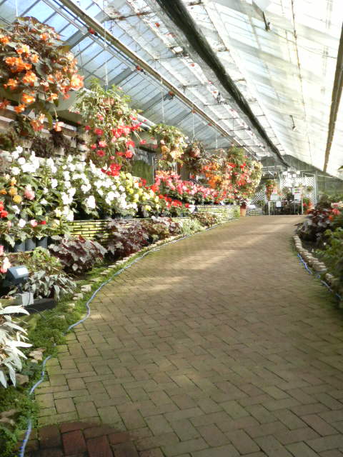 画像はベゴニア園。両側を花で埋め尽くされた小路が温室内を巡っている。